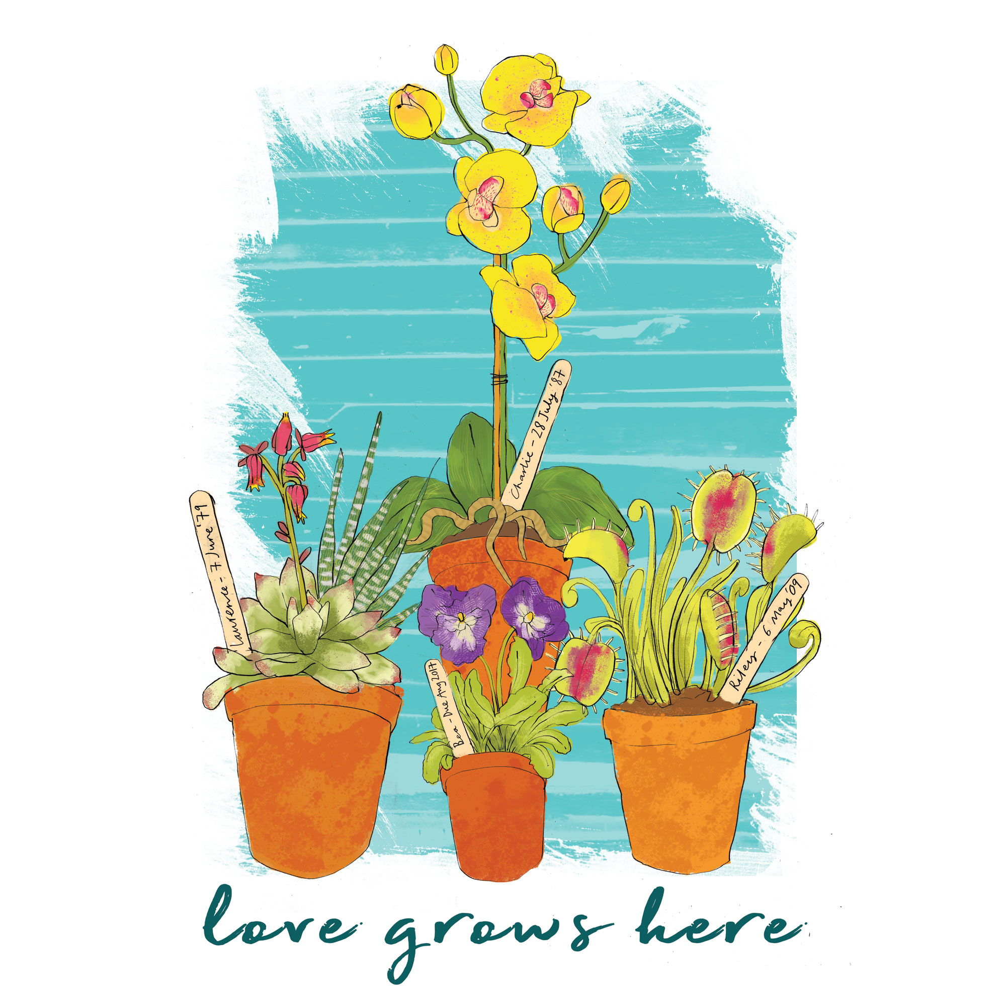 I love to draw, doodle and sketch. I use good old HB pencil to draw, most of the time in either a scruffy sketchbook, or just some A4 printer paper. Once I’m happy with what I have created, I scan it in to my laptop. From there, the exciting stuff happens. I use Photoshop to build my image and colour it. For this I use a stylus, a pen that works with the computer. The pen includes various digital brushes, with which I can create all the textures and layers of the image. I wouldn’t know how to describe my style really. Its bright, bold, colourful, and I hope fun