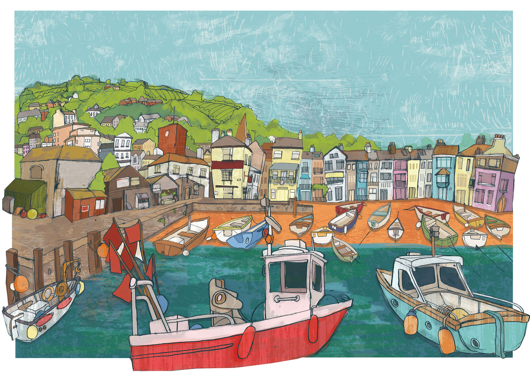 My work is a real mix of fun, colourful kids illustration and moody scenery and landscapes from around Teignmouth, Devon. I draw all my images by hand and colour them digitally. I real mix of old and new. I hope you enjoy having a look through and please take a look at my shop should any particular images catch your eye.