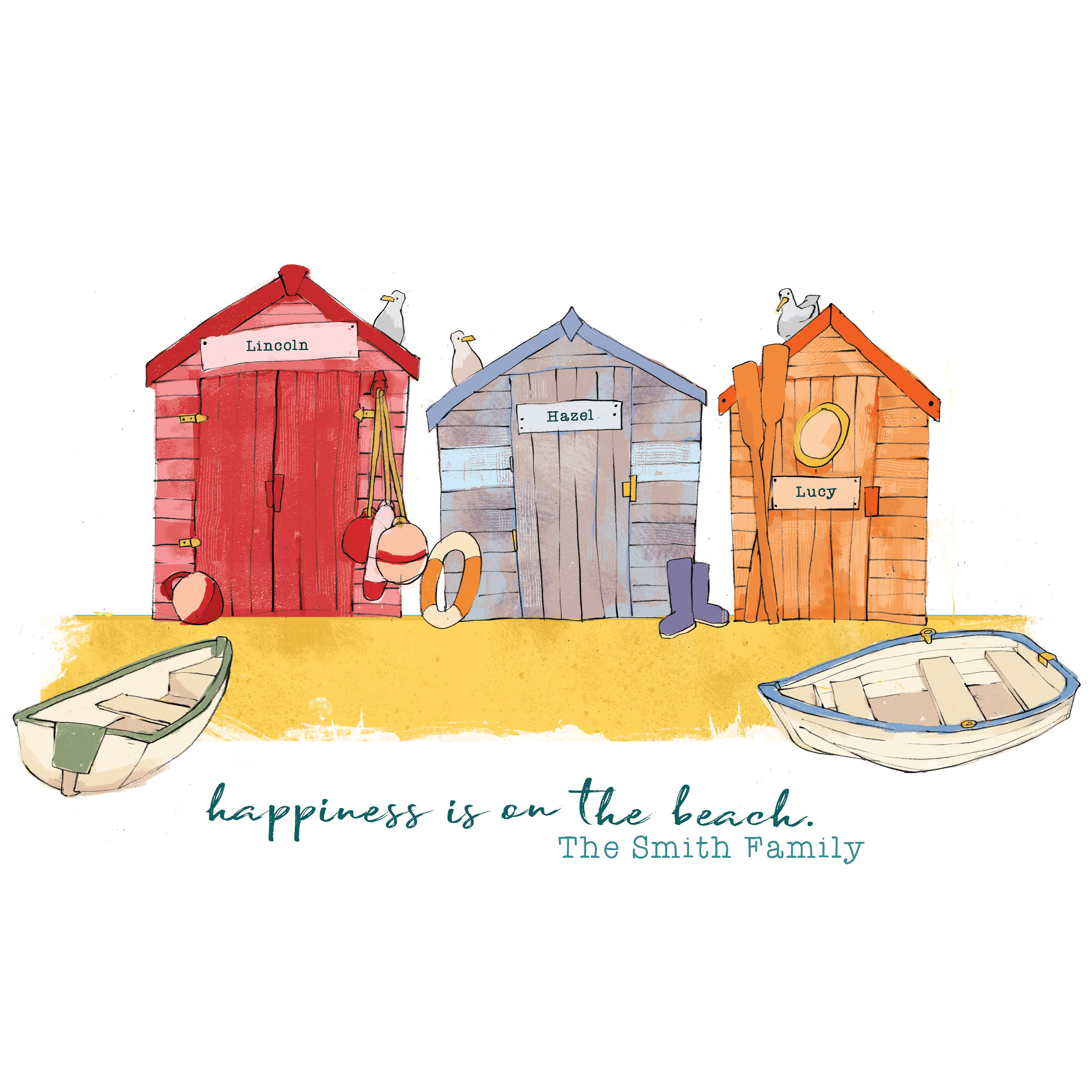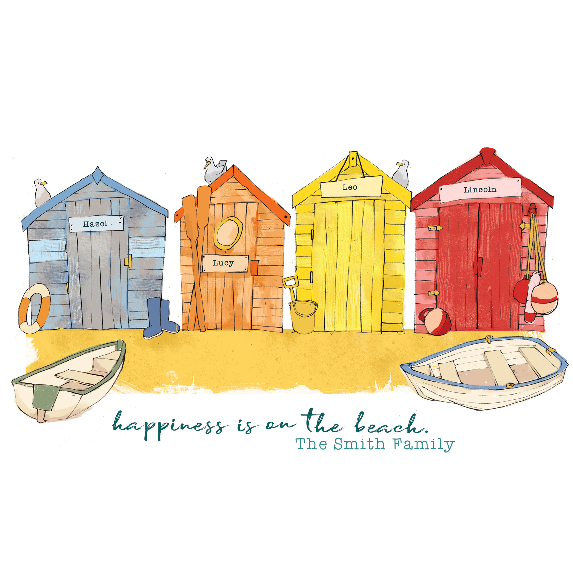 If you are lucky enough to live near the beach or even just manage to get there on holiday, then this personalised family portrait should make you smile. This beach hut scene captures the happiness of those warm summer days spent as a family with sandy toes and having a paddle in the waves. Inspired from the back beach of Teignmouth, it is a lovely way to catch a lasting memory of those days spent together having fun.